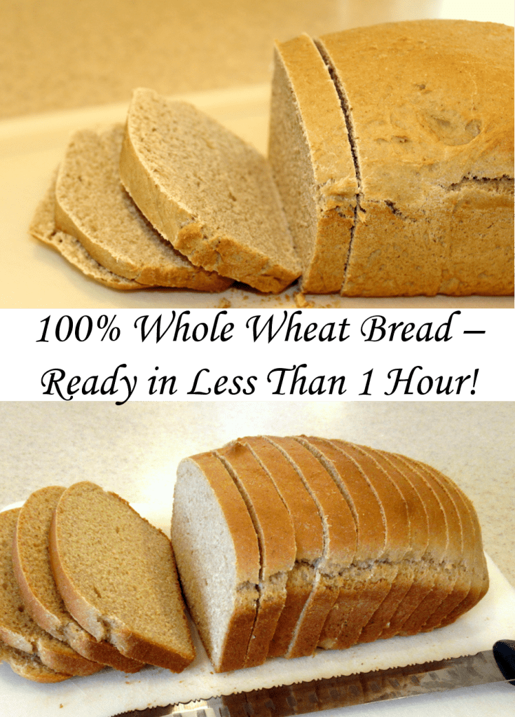 This 100% whole wheat bread is easy and ready to eat in less than an hour!